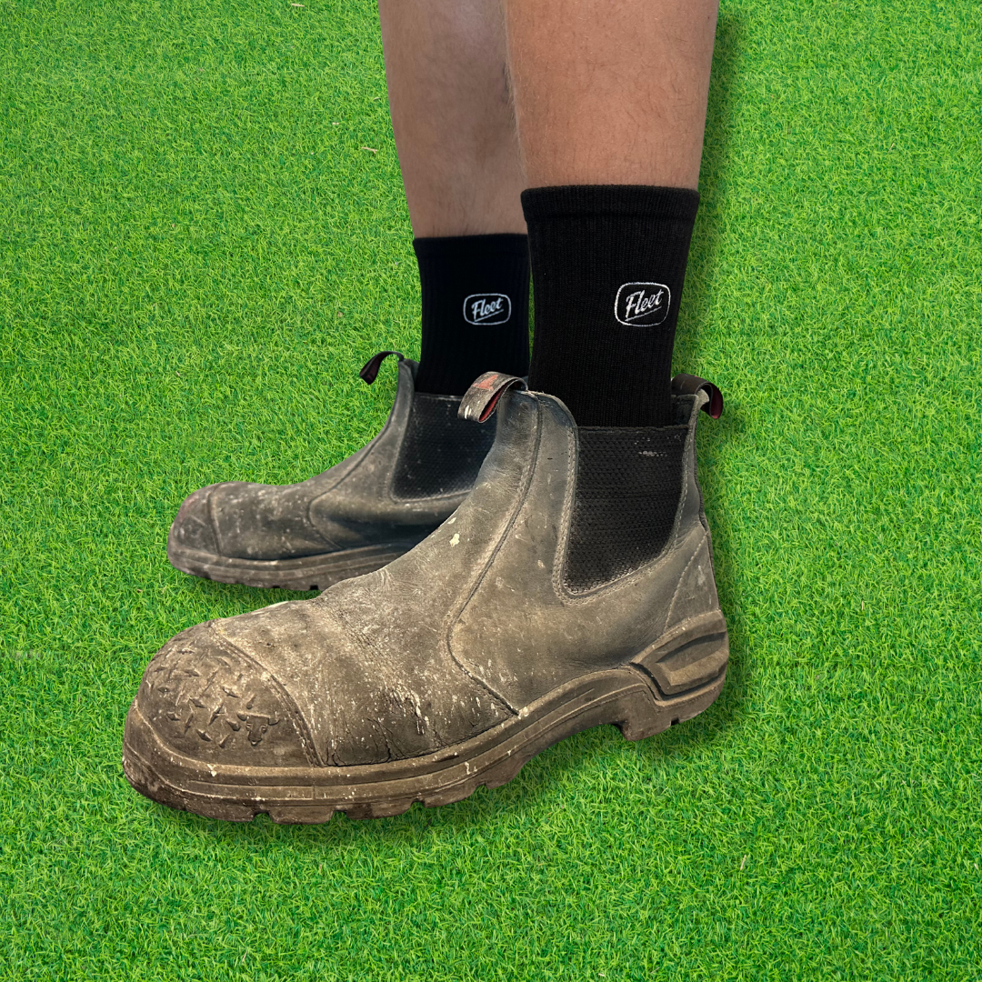 Step into comfort with Fleet Socks – designed for those who are always on the move. These crew-length socks combine a snug fit with breathable fabric, making them perfect for long days on the field, in the workshop, or anywhere in between.